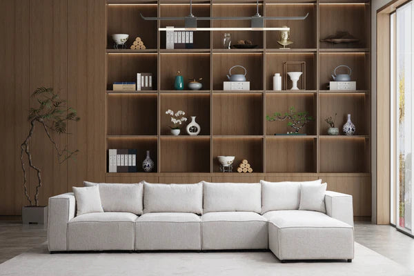 Un canapé confortable propice au bien-être pour un intérieur minimaliste et harmonieux.